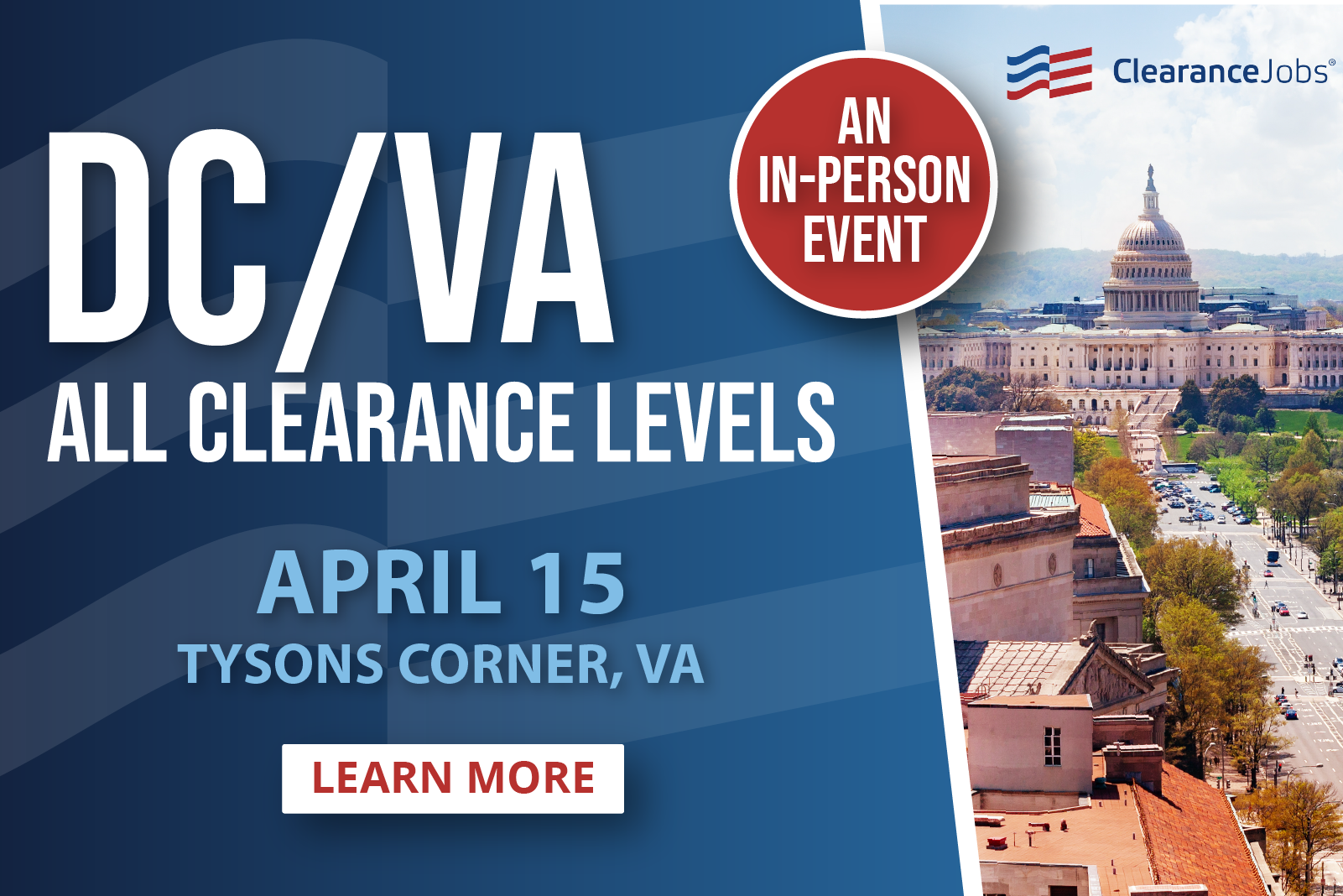 With over 20 career events held each year throughout the country, ClearanceJobs is the leading producer of career events catering to security-cleared professionals.